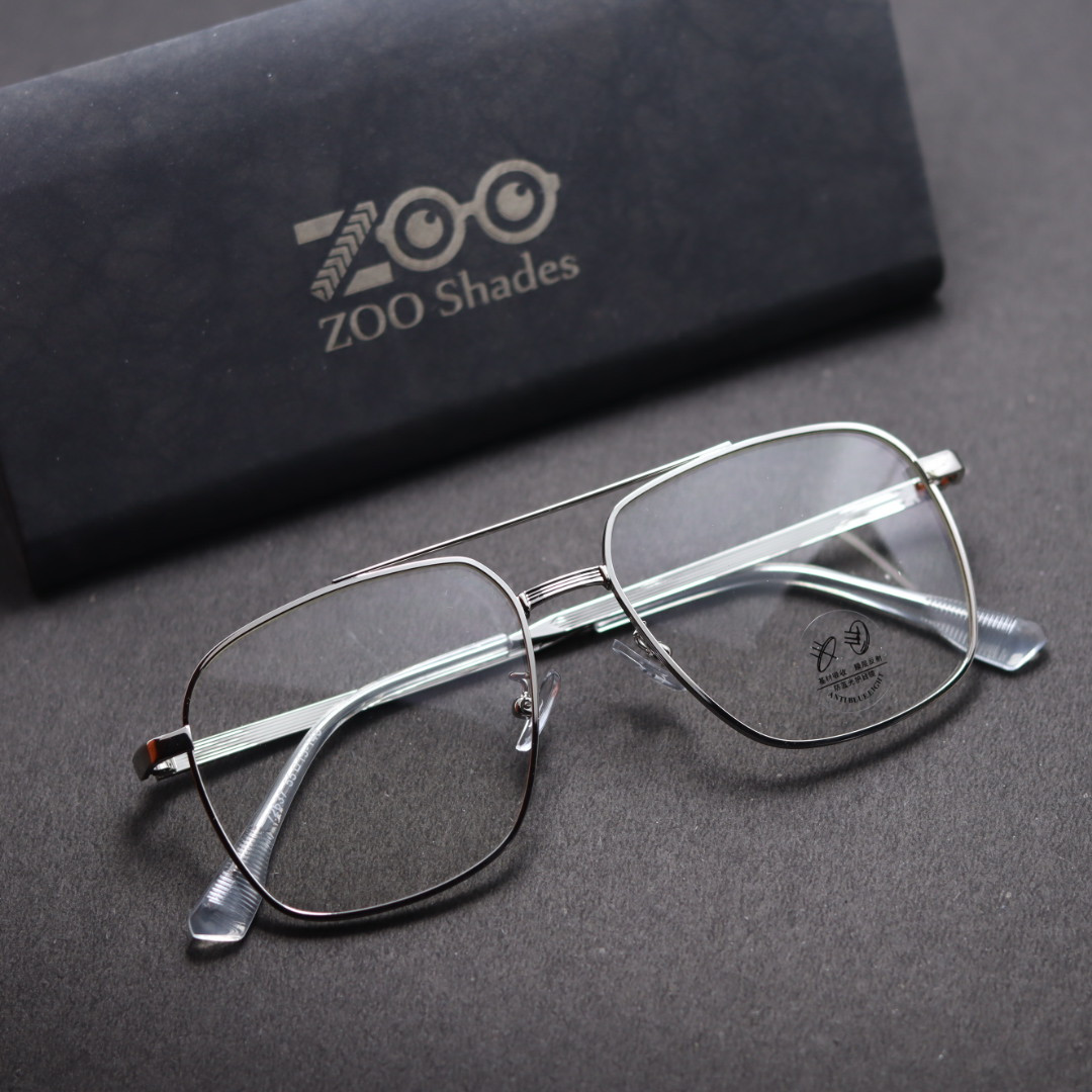 ZOO Shades Blue Ray Cut Double Bar Black & Silver Metal Frame Glass For Men & Women